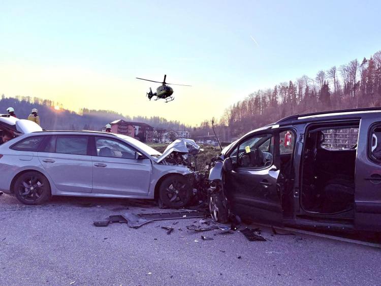 Bei dem Unfall wurden alle vier Personen in den Fahrzeugen schwer verletzt. Sie wurden nach der medizinischen Erstversorgung vor Ort mit zwei Rettungshelikoptern und zwei Rettungswagen in Spitäler gebracht.