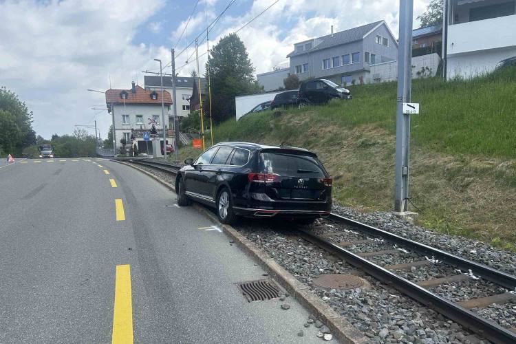 In Trogen verlor eine 31-jährige Autolenkerin bei einem Selbstunfall die Kontrolle und fuhr auf das Trassee der Appenzeller Bahnen.