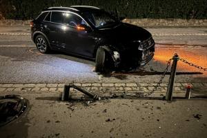 Die Lenkerin eines Personenwagens fuhr gegen 01:10 Uhr auf der Zollstrasse in Vaduz in den Aukreisel ein und bog dann in die Austrasse in Richtung Triesen ab. Kurz nach Abbiegen verlor sie die Kontrolle über das Fahrzeug und kollidierte mit einem rechtsseitig befindlichen Eisenpfosten. Am Fahrzeug und am Eisenpfosten entstand Sachschaden, verletzt wurde niemand.