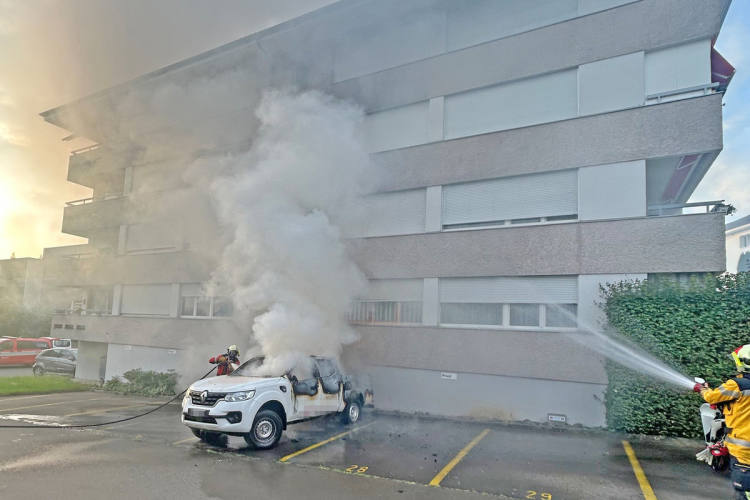 Der Lieferwagen erlitt Totalschaden, zudem wurden durch Hitze, Rauch und Flammen die angrenzende Hausfassade und ein danebenstehendes Auto beschädigt. Es entstand Sachschaden von mehreren zehntausend Franken.