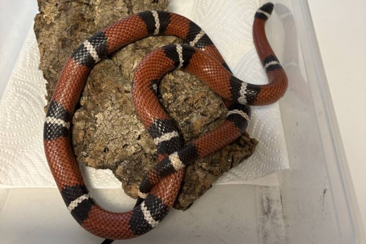 Gestern Abend, 30. Juni 2025, meldete sich der Halter der Königsnatter, die am Samstag in einem Garten in Veltheim entdeckt wurde. Er war am Wochenende nicht zu Hause und bemerkte gestern, dass die Schlange nicht im Terrarium war.