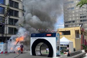Am Donnerstagnachmittag ist es in der Fanzone der Euro25 an der Europaallee in Zürich zu einem Brand gekommen. Das Fahrzeug eines Imbissstands geriet aus noch ungeklärten Gründen in Brand.