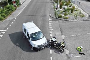 Am Montag, den 14. Juli, kurz vor 17.00 Uhr, fuhr ein 21-jähriger Autofahrer in Châtel-St-Denis auf der Route de Montreux in Richtung Stadtzentrum. Als er auf Höhe der Hausnummer 140 nach links abbog, kam es zu einer Kollision mit einem Motorradfahrer der Polizei, der sich auf einer Notfallfahrt befand und die Autokolonne überholte. Durch den Aufprall stürzte der Motorradfahrer.