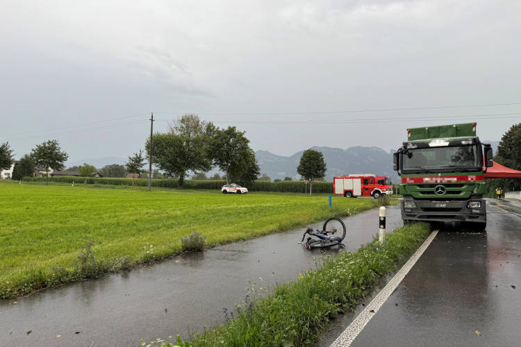Am Samstag, 19. Juli 2025, kam es in Diepoldsau auf der Balgacherstrasse zu einem Unfall zwischen einem E-Bike und einem Lastwagen. Bei der Kollision wurde der 82-jährige E-Bike-Fahrer tödlich verletzt. Zum Unfallhergang wurde eine Untersuchung eingeleitet.