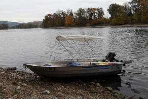 Das 6PS-Aluboot der Marke Linder war an einem Holzpfosten direkt bei der Leitung der Pumpstation festgemacht.