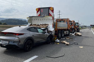 Auf der A1 bei Mattstetten ist am Dienstagmittag ein Auto mit dem Anpralldämpfer eines Lastwagens kollidiert. Der Lenker wurde verletzt ins Spital gebracht, die Autobahn war mehrere Stunden nur eingeschränkt befahrbar.