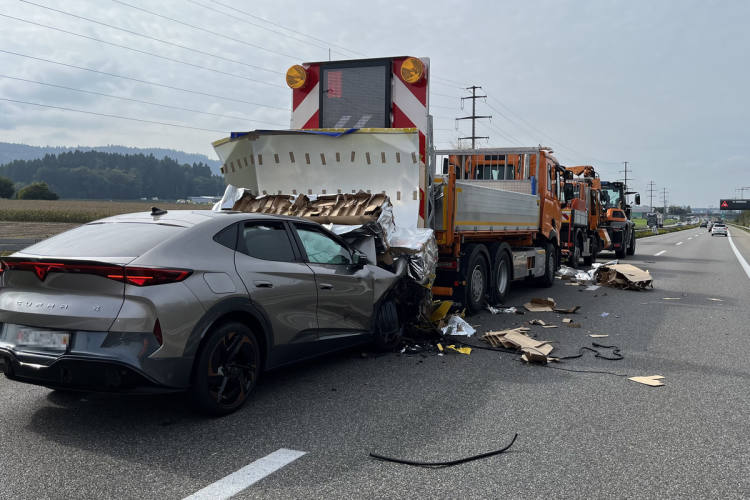 Gemäss ersten Erkenntnissen kam es in Fahrtrichtung Bern zu einer Kollision zwischen einem Auto und einem Anpralldämpfer eines Lastwagens eines Autobahnwerkhofs. Der Autofahrer wurde dabei verletzt und mit der Ambulanz ins Spital gefahren.