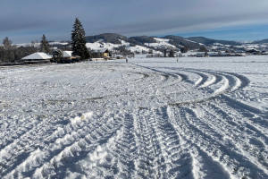 In der Zeit zwischen Samstagabend (22. November 2025) um 17:00 Uhr und Sonntagmorgen (23. November 2025) um 08:00 Uhr, sind Unbekannte mit einem Fahrzeug bei der Talstation beim Skilift Nollen in der Gemeinde Unterägeri über den präparierten Parkplatz gefahren.